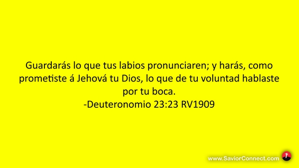 Guardarás lo que tus labios pronunciaren; y harás, como prometiste á Jehová tu Dios, lo que de tu voluntad hablaste por tu boca. -Deuteronomio 23:23 RV1909
