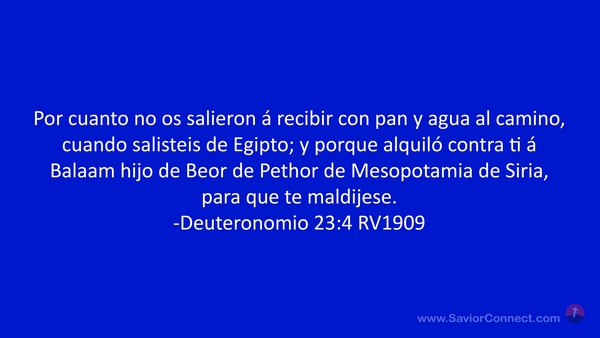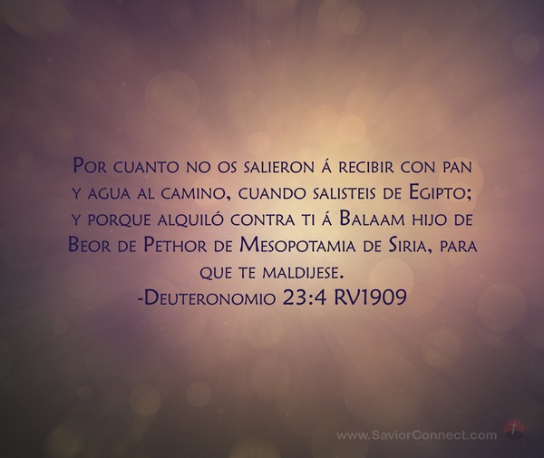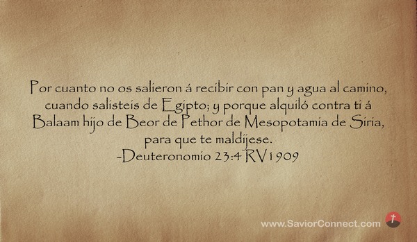 Por cuanto no os salieron á recibir con pan y agua al camino, cuando salisteis de Egipto; y porque alquiló contra ti á Balaam hijo de Beor de Pethor de Mesopotamia de Siria, para que te maldijese. -Deuteronomio 23:4 RV1909