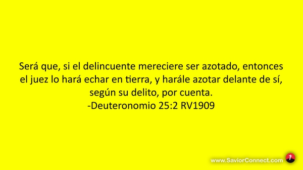 Será que, si el delincuente mereciere ser azotado, entonces el juez lo hará echar en tierra, y harále azotar delante de sí, según su delito, por cuenta. -Deuteronomio 25:2 RV1909