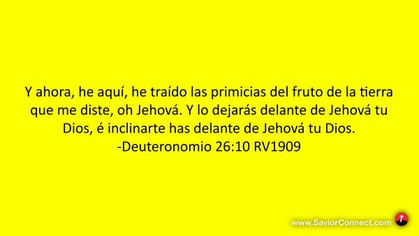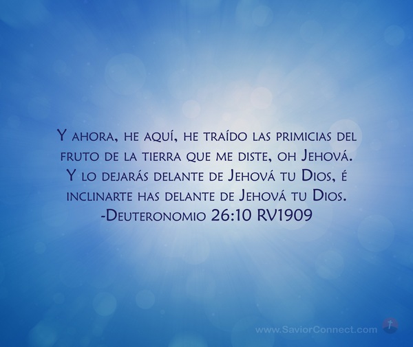 Y ahora, he aquí, he traído las primicias del fruto de la tierra que me diste, oh Jehová. Y lo dejarás delante de Jehová tu Dios, é inclinarte has delante de Jehová tu Dios. -Deuteronomio 26:10 RV1909