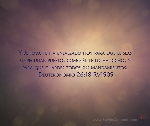 Y Jehová te ha ensalzado hoy para que le seas su peculiar pueblo, como él te lo ha dicho, y para que guardes todos sus mandamientos; -Deuteronomio 26:18 RV1909