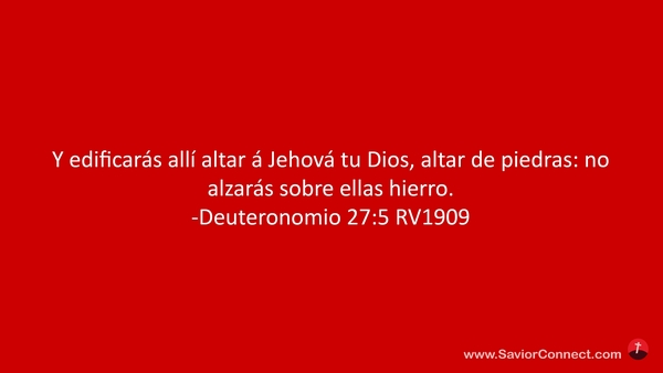 Y edificarás allí altar á Jehová tu Dios, altar de piedras: no alzarás sobre ellas hierro. -Deuteronomio 27:5 RV1909