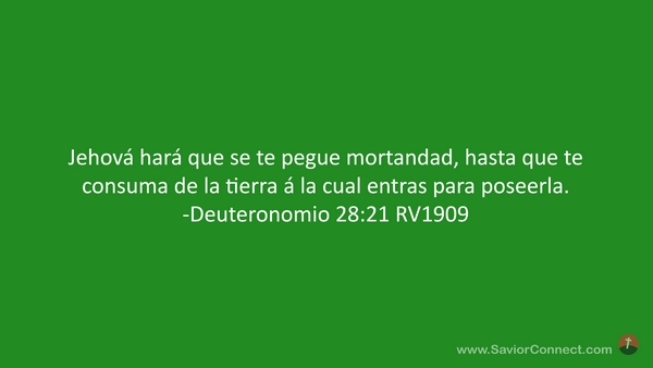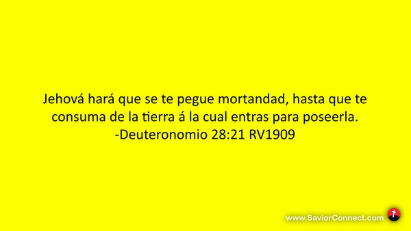 Jehová hará que se te pegue mortandad, hasta que te consuma de la tierra á la cual entras para poseerla. -Deuteronomio 28:21 RV1909