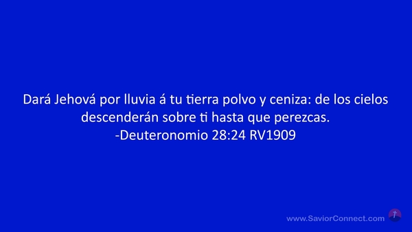Dará Jehová por lluvia á tu tierra polvo y ceniza: de los cielos descenderán sobre ti hasta que perezcas. -Deuteronomio 28:24 RV1909