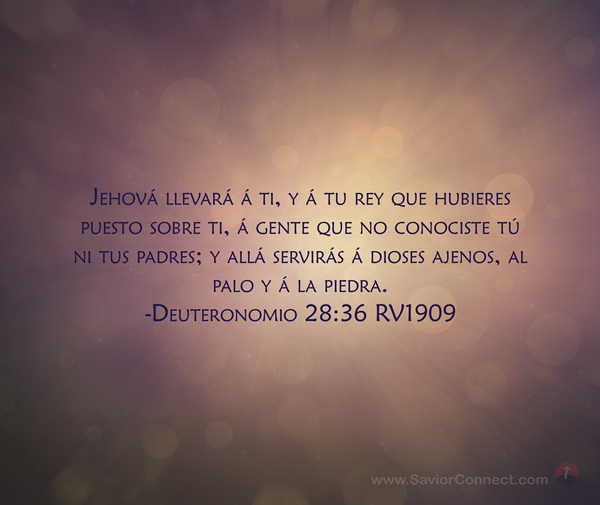 Jehová llevará á ti, y á tu rey que hubieres puesto sobre ti, á gente que no conociste tú ni tus padres; y allá servirás á dioses ajenos, al palo y á la piedra. -Deuteronomio 28:36 RV1909