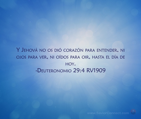 Y Jehová no os dió corazón para entender, ni ojos para ver, ni oídos para oir, hasta el día de hoy. -Deuteronomio 29:4 RV1909