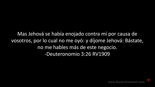 Mas Jehová se había enojado contra mí por causa de vosotros, por lo cual no me oyó: y díjome Jehová: Bástate, no me hables más de este negocio. -Deuteronomio 3:26 RV1909