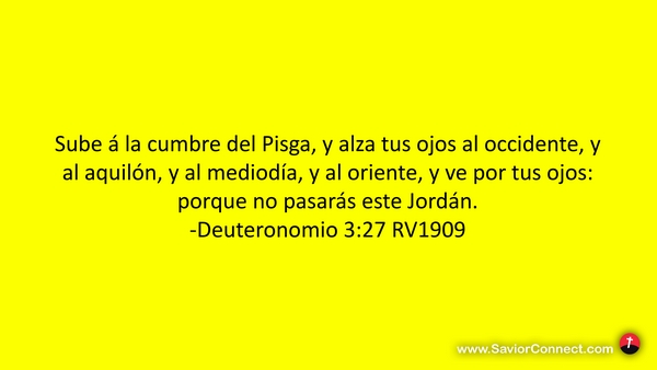 Sube á la cumbre del Pisga, y alza tus ojos al occidente, y al aquilón, y al mediodía, y al oriente, y ve por tus ojos: porque no pasarás este Jordán. -Deuteronomio 3:27 RV1909