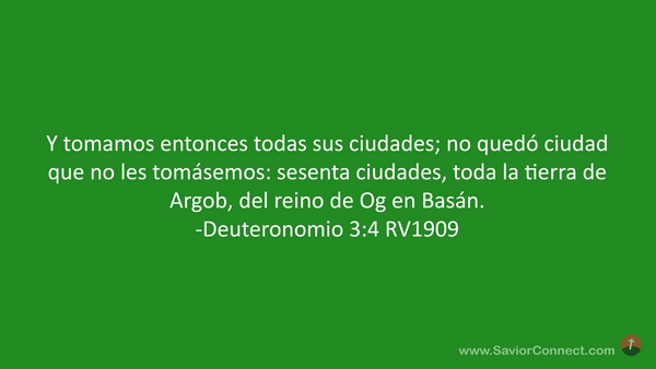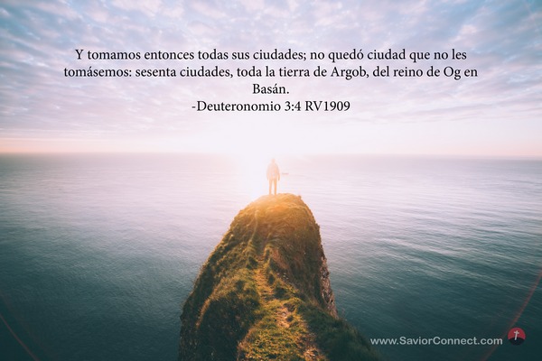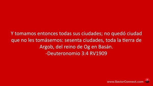 Y tomamos entonces todas sus ciudades; no quedó ciudad que no les tomásemos: sesenta ciudades, toda la tierra de Argob, del reino de Og en Basán. -Deuteronomio 3:4 RV1909
