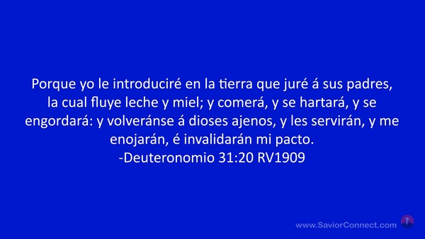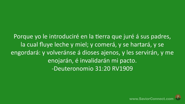 Porque yo le introduciré en la tierra que juré á sus padres, la cual fluye leche y miel; y comerá, y se hartará, y se engordará: y volveránse á dioses ajenos, y les servirán, y me enojarán, é invalidarán mi pacto. -Deuteronomio 31:20 RV1909