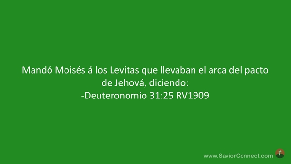 Mandó Moisés á los Levitas que llevaban el arca del pacto de Jehová, diciendo: -Deuteronomio 31:25 RV1909