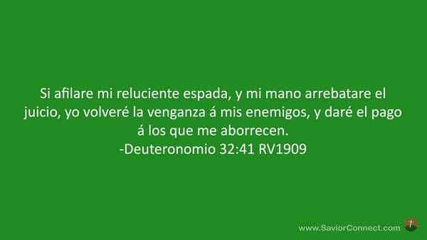Si afilare mi reluciente espada, y mi mano arrebatare el juicio, yo volveré la venganza á mis enemigos, y daré el pago á los que me aborrecen. -Deuteronomio 32:41 RV1909