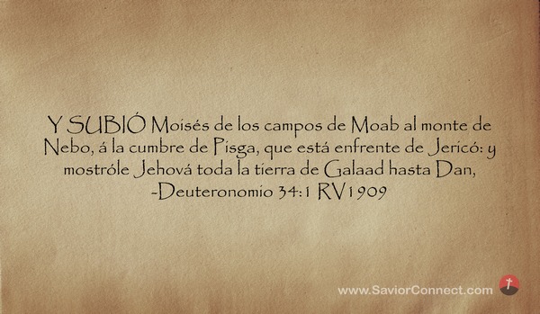 Y SUBIÓ Moisés de los campos de Moab al monte de Nebo, á la cumbre de Pisga, que está enfrente de Jericó: y mostróle Jehová toda la tierra de Galaad hasta Dan, -Deuteronomio 34:1 RV1909