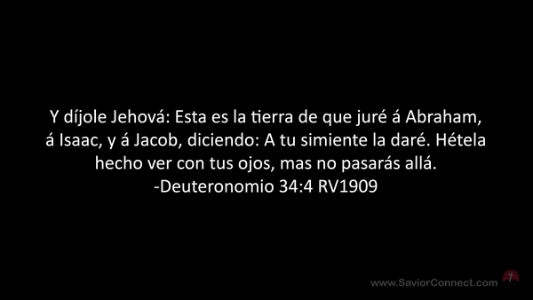 Y díjole Jehová: Esta es la tierra de que juré á Abraham, á Isaac, y á Jacob, diciendo: A tu simiente la daré. Hétela hecho ver con tus ojos, mas no pasarás allá. -Deuteronomio 34:4 RV1909