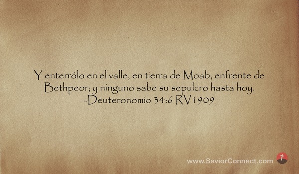 Y enterrólo en el valle, en tierra de Moab, enfrente de Bethpeor; y ninguno sabe su sepulcro hasta hoy. -Deuteronomio 34:6 RV1909