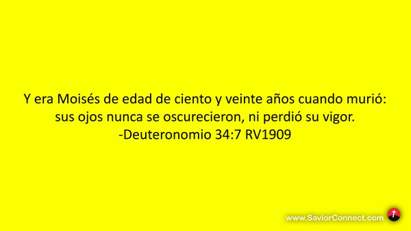 Y era Moisés de edad de ciento y veinte años cuando murió: sus ojos nunca se oscurecieron, ni perdió su vigor. -Deuteronomio 34:7 RV1909
