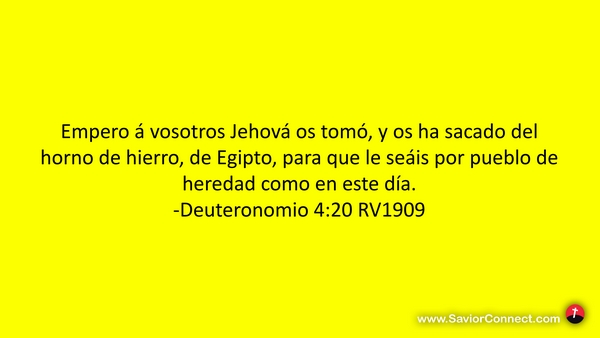 Empero á vosotros Jehová os tomó, y os ha sacado del horno de hierro, de Egipto, para que le seáis por pueblo de heredad como en este día. -Deuteronomio 4:20 RV1909