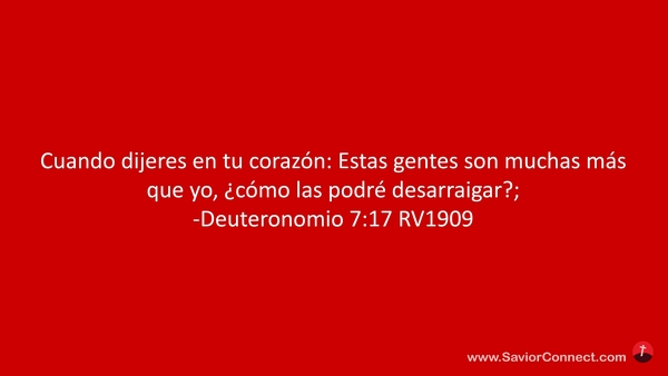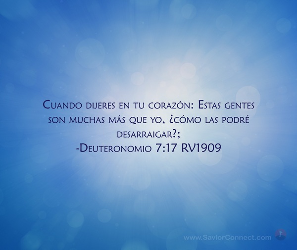 Cuando dijeres en tu corazón: Estas gentes son muchas más que yo, ¿cómo las podré desarraigar?; -Deuteronomio 7:17 RV1909