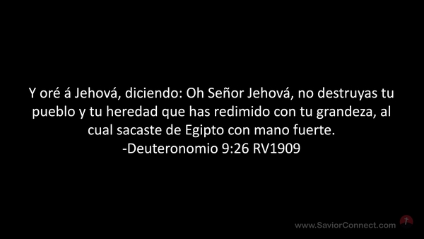 Y oré á Jehová, diciendo: Oh Señor Jehová, no destruyas tu pueblo y tu heredad que has redimido con tu grandeza, al cual sacaste de Egipto con mano fuerte. -Deuteronomio 9:26 RV1909