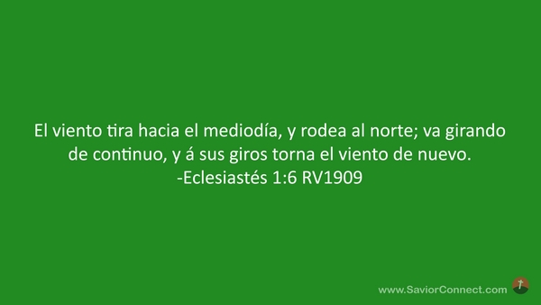 El viento tira hacia el mediodía, y rodea al norte; va girando de continuo, y á sus giros torna el viento de nuevo. -Eclesiastés 1:6 RV1909