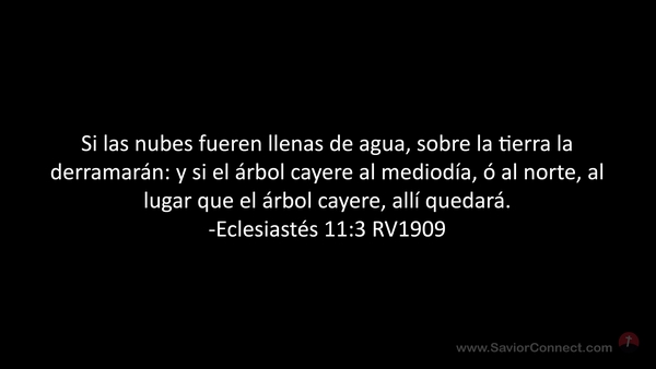 Si las nubes fueren llenas de agua, sobre la tierra la derramarán: y si el árbol cayere al mediodía, ó al norte, al lugar que el árbol cayere, allí quedará. -Eclesiastés 11:3 RV1909