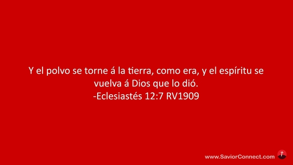 Y el polvo se torne á la tierra, como era, y el espíritu se vuelva á Dios que lo dió. -Eclesiastés 12:7 RV1909