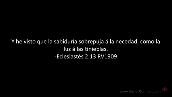 Y he visto que la sabiduría sobrepuja á la necedad, como la luz á las tinieblas. -Eclesiastés 2:13 RV1909