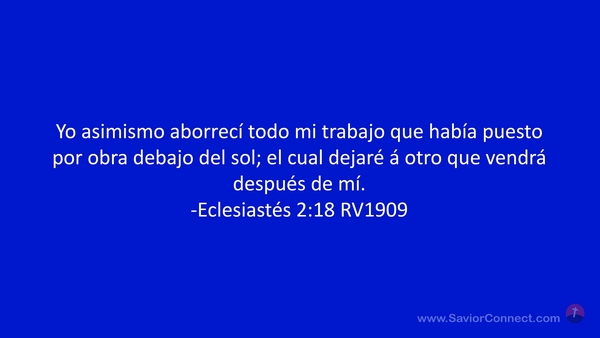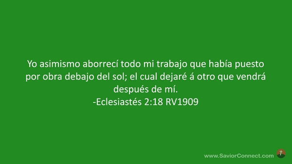 Yo asimismo aborrecí todo mi trabajo que había puesto por obra debajo del sol; el cual dejaré á otro que vendrá después de mí. -Eclesiastés 2:18 RV1909