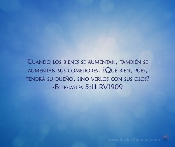 Cuando los bienes se aumentan, también se aumentan sus comedores. ¿Qué bien, pues, tendrá su dueño, sino verlos con sus ojos? -Eclesiastés 5:11 RV1909
