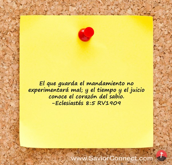 El que guarda el mandamiento no experimentará mal; y el tiempo y el juicio conoce el corazón del sabio. -Eclesiastés 8:5 RV1909