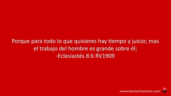 Porque para todo lo que quisieres hay tiempo y juicio; mas el trabajo del hombre es grande sobre él; -Eclesiastés 8:6 RV1909