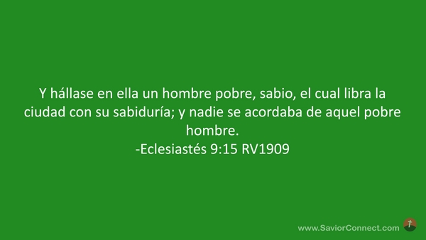 Y hállase en ella un hombre pobre, sabio, el cual libra la ciudad con su sabiduría; y nadie se acordaba de aquel pobre hombre. -Eclesiastés 9:15 RV1909