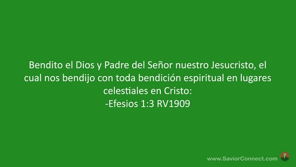 Bendito el Dios y Padre del Señor nuestro Jesucristo, el cual nos bendijo con toda bendición espiritual en lugares celestiales en Cristo: -Efesios 1:3 RV1909