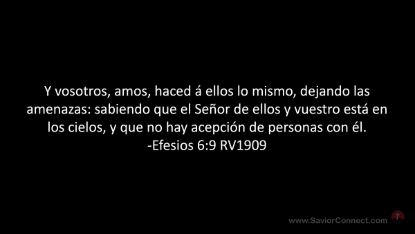Y vosotros, amos, haced á ellos lo mismo, dejando las amenazas: sabiendo que el Señor de ellos y vuestro está en los cielos, y que no hay acepción de personas con él. -Efesios 6:9 RV1909