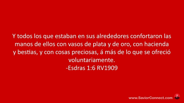 Y todos los que estaban en sus alrededores confortaron las manos de ellos con vasos de plata y de oro, con hacienda y bestias, y con cosas preciosas, á más de lo que se ofreció voluntariamente. -Esdras 1:6 RV1909