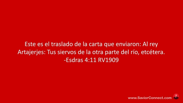 Este es el traslado de la carta que enviaron: Al rey Artajerjes: Tus siervos de la otra parte del río, etcétera. -Esdras 4:11 RV1909