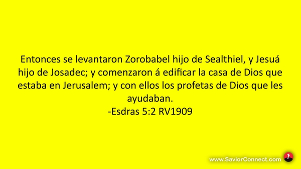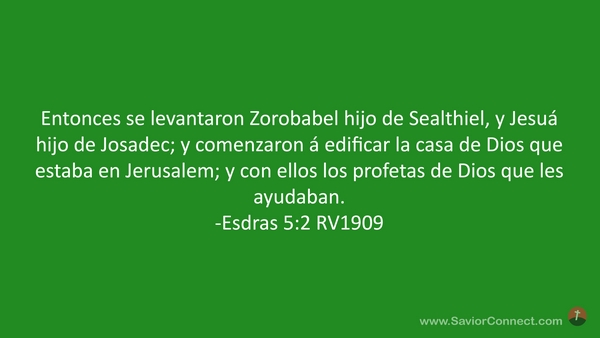 Entonces se levantaron Zorobabel hijo de Sealthiel, y Jesuá hijo de Josadec; y comenzaron á edificar la casa de Dios que estaba en Jerusalem; y con ellos los profetas de Dios que les ayudaban. -Esdras 5:2 RV1909