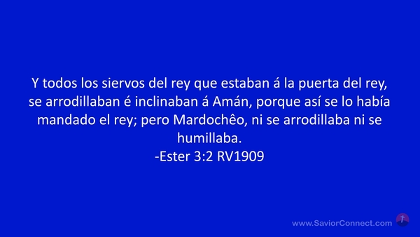 Y todos los siervos del rey que estaban á la puerta del rey, se arrodillaban é inclinaban á Amán, porque así se lo había mandado el rey; pero Mardochêo, ni se arrodillaba ni se humillaba. -Ester 3:2 RV1909