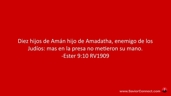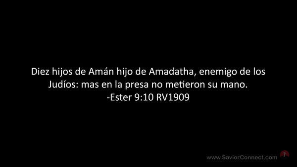 Diez hijos de Amán hijo de Amadatha, enemigo de los Judíos: mas en la presa no metieron su mano. -Ester 9:10 RV1909