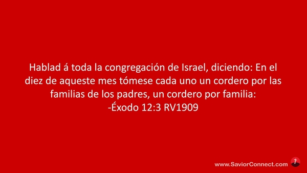 Hablad á toda la congregación de Israel, diciendo: En el diez de aqueste mes tómese cada uno un cordero por las familias de los padres, un cordero por familia: -Éxodo 12:3 RV1909