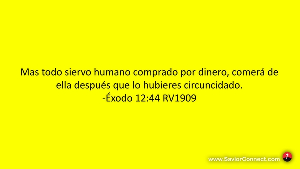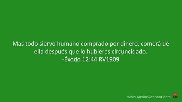 Mas todo siervo humano comprado por dinero, comerá de ella después que lo hubieres circuncidado. -Éxodo 12:44 RV1909