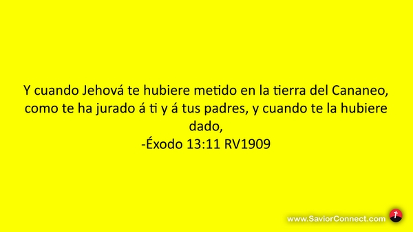 Y cuando Jehová te hubiere metido en la tierra del Cananeo, como te ha jurado á ti y á tus padres, y cuando te la hubiere dado, -Éxodo 13:11 RV1909