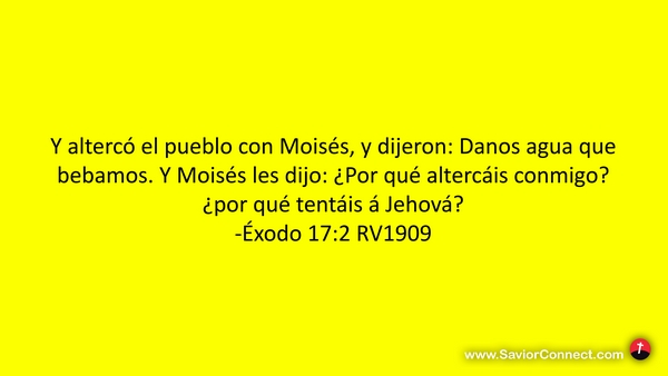 Y altercó el pueblo con Moisés, y dijeron: Danos agua que bebamos. Y Moisés les dijo: ¿Por qué altercáis conmigo? ¿por qué tentáis á Jehová? -Éxodo 17:2 RV1909