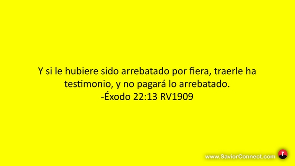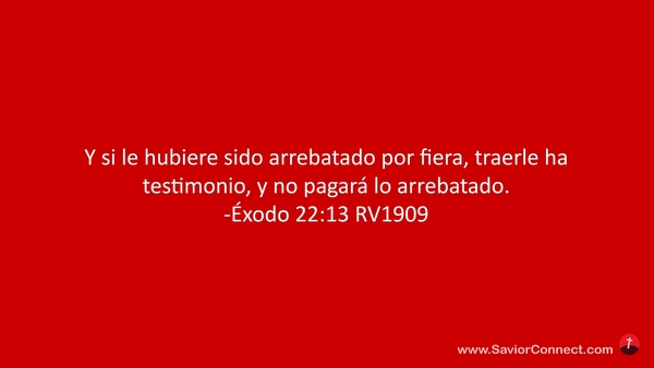 Y si le hubiere sido arrebatado por fiera, traerle ha testimonio, y no pagará lo arrebatado. -Éxodo 22:13 RV1909