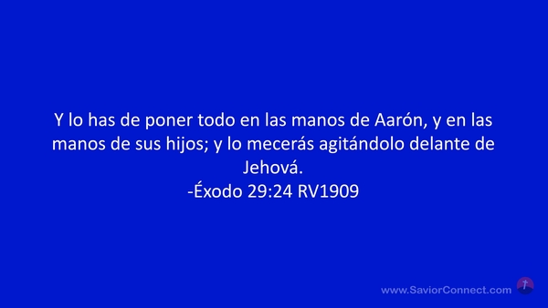 Y lo has de poner todo en las manos de Aarón, y en las manos de sus hijos; y lo mecerás agitándolo delante de Jehová. -Éxodo 29:24 RV1909