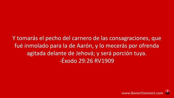 Y tomarás el pecho del carnero de las consagraciones, que fué inmolado para la de Aarón, y lo mecerás por ofrenda agitada delante de Jehová; y será porción tuya. -Éxodo 29:26 RV1909