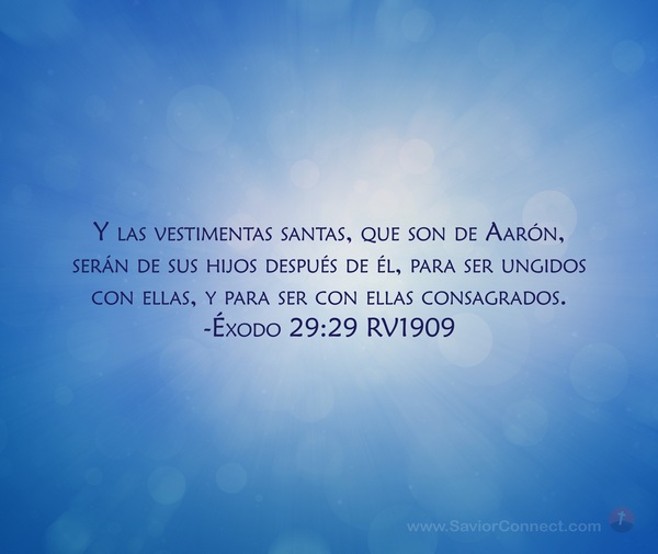 Y las vestimentas santas, que son de Aarón, serán de sus hijos después de él, para ser ungidos con ellas, y para ser con ellas consagrados. -Éxodo 29:29 RV1909