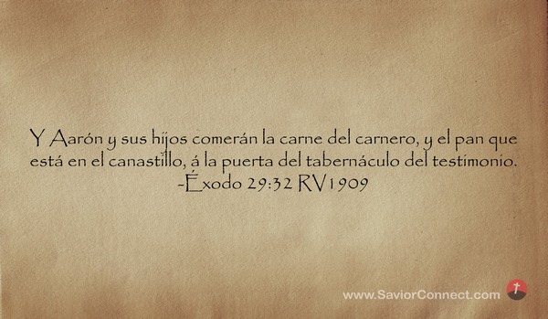 Y Aarón y sus hijos comerán la carne del carnero, y el pan que está en el canastillo, á la puerta del tabernáculo del testimonio. -Éxodo 29:32 RV1909