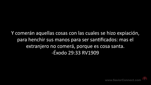 Y comerán aquellas cosas con las cuales se hizo expiación, para henchir sus manos para ser santificados: mas el extranjero no comerá, porque es cosa santa. -Éxodo 29:33 RV1909