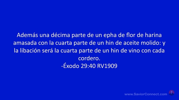 Además una décima parte de un epha de flor de harina amasada con la cuarta parte de un hin de aceite molido: y la libación será la cuarta parte de un hin de vino con cada cordero. -Éxodo 29:40 RV1909